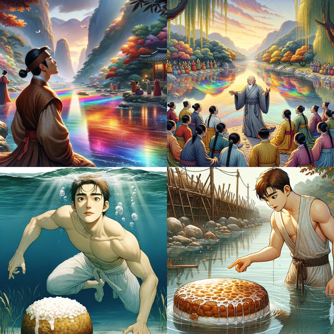The record shows that he deliberately placed oily rice cakes in the Daedong River, causing the floating oil to emit five-colored light - Why? Let’s Find out!