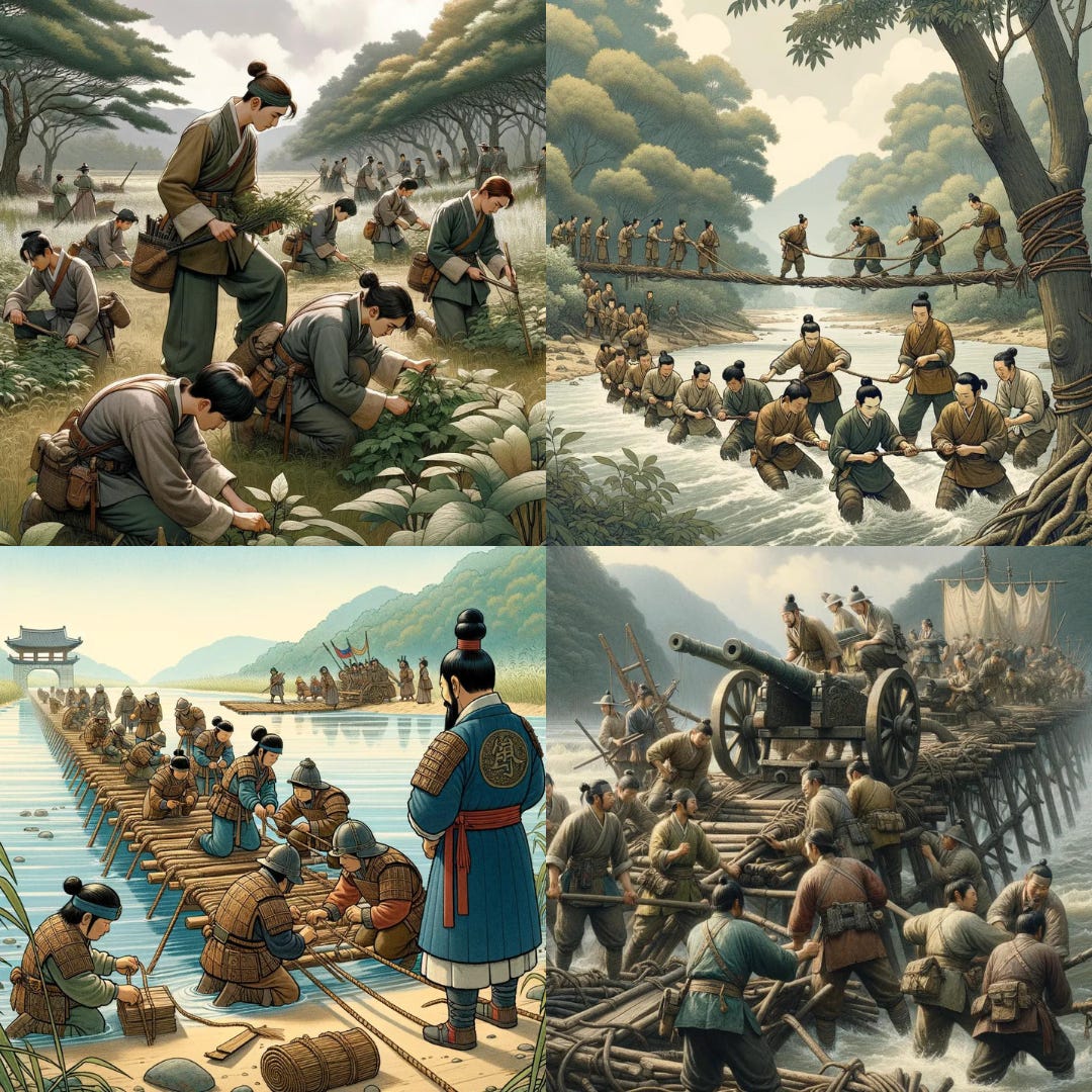 『징비록』 states that in January 1593, Yu constructed a temporary bridge using kudzu vines to safely allow a Ming army of 50,000 to cross the river.